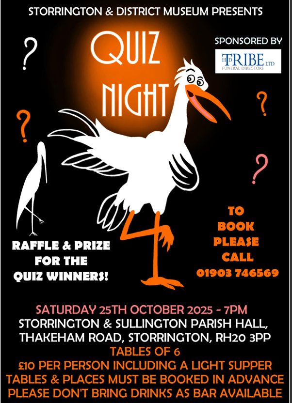 Saturday 24th October—Quiz Night – Book your place by calling 01903 746569 £10 pp tables of 6. Light supper provided and cash bar.