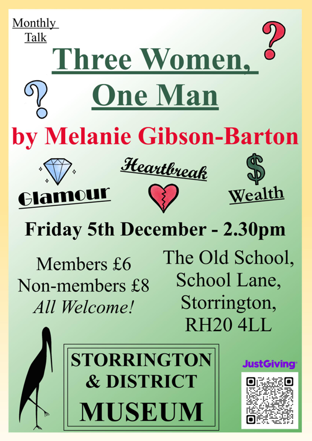 Before commencing her mystery talk, ‘Three Women, One Man – Glamour, Wealth and Heartbreak’, speaker Melanie Gibson-Barton asks us to keep secret the names of the intriguing participants about to be portrayed.