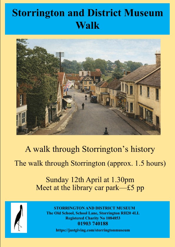 Sunday 12th April —A Walk Through Storrington’s History – Meet at the Library Car Park for a 13:30 start, finish at 15:00. £5 pp.